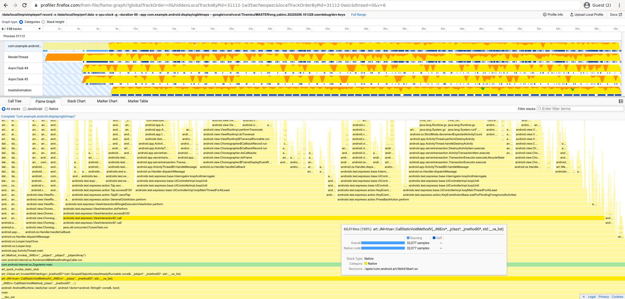 This is an example of a 60s DisplayBitmaps app Startup Profile.