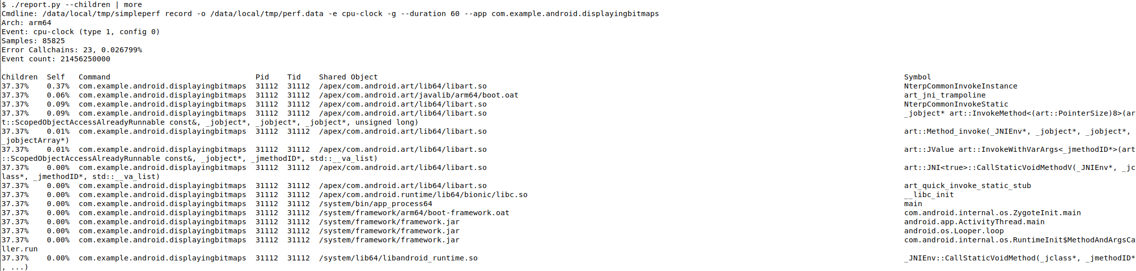 $ bin/linux/x86_64/simpleperf report -g -i perf.data